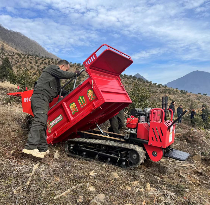 (800-6)The 500KG Rated / 1 Ton Max Mini Crawler Transporter offers exceptional versatility for small-to-medium hilly tasks! Rated 500kg for reliable daily performance (max 1000kg overload on flat/short runs), powered by a durable diesel/gasoline engine (9-13HP), with hydraulic tipping and rubber tracks for low ground pressure and strong traction on slopes up to 45°. Perfect for Southeast Asia orchards (palm/fruit hauling), African smallholder farms (affordable, tough), and global dealers seeking compact tracked dumpers. Narrow design navigates tight paths easily, with low maintenance and customizable features like remote control. High-quality China export machinery – efficient, robust, and ready for worldwide delivery!