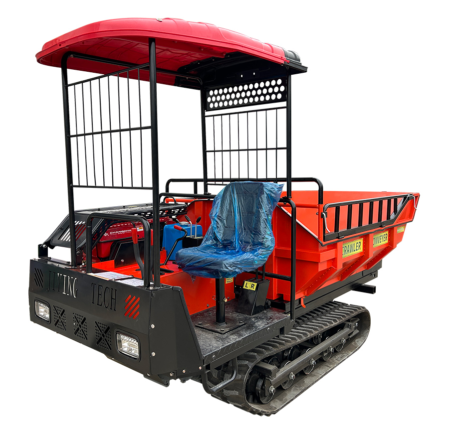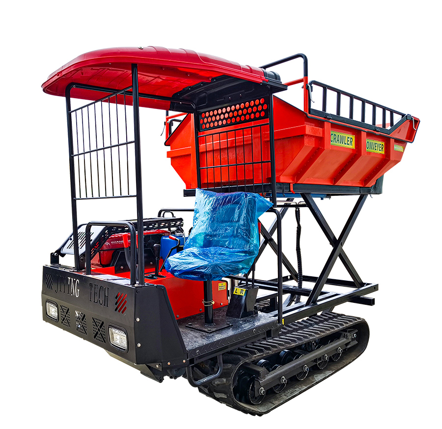 This Crawler Transporter features a hydraulic lifting dump bed (elevating skip) that raises the cargo box to higher discharge heights, making it ideal for loading/unloading into trucks, containers, raised beds, or over obstacles. With a safe rated payload of 900kg for continuous operation and maximum capacity up to 2000kg in short heavy-duty hauls, it combines superior terrain mobility with enhanced unloading versatility.